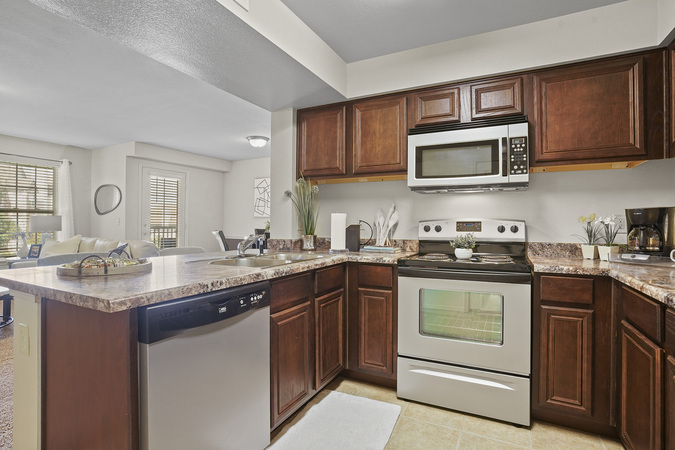 The Park at Mission Hills 1 bedroom apartments put you at the center of attention with a lavishly proportioned bedroom and a conveniently organized kitchen with ample counter space that is lifted and ready for bar stools. The ambient lighting from multiple wide windows brings a natural calmness to each morning and creates a bright yet focused working environment in your alcove or optional patio.