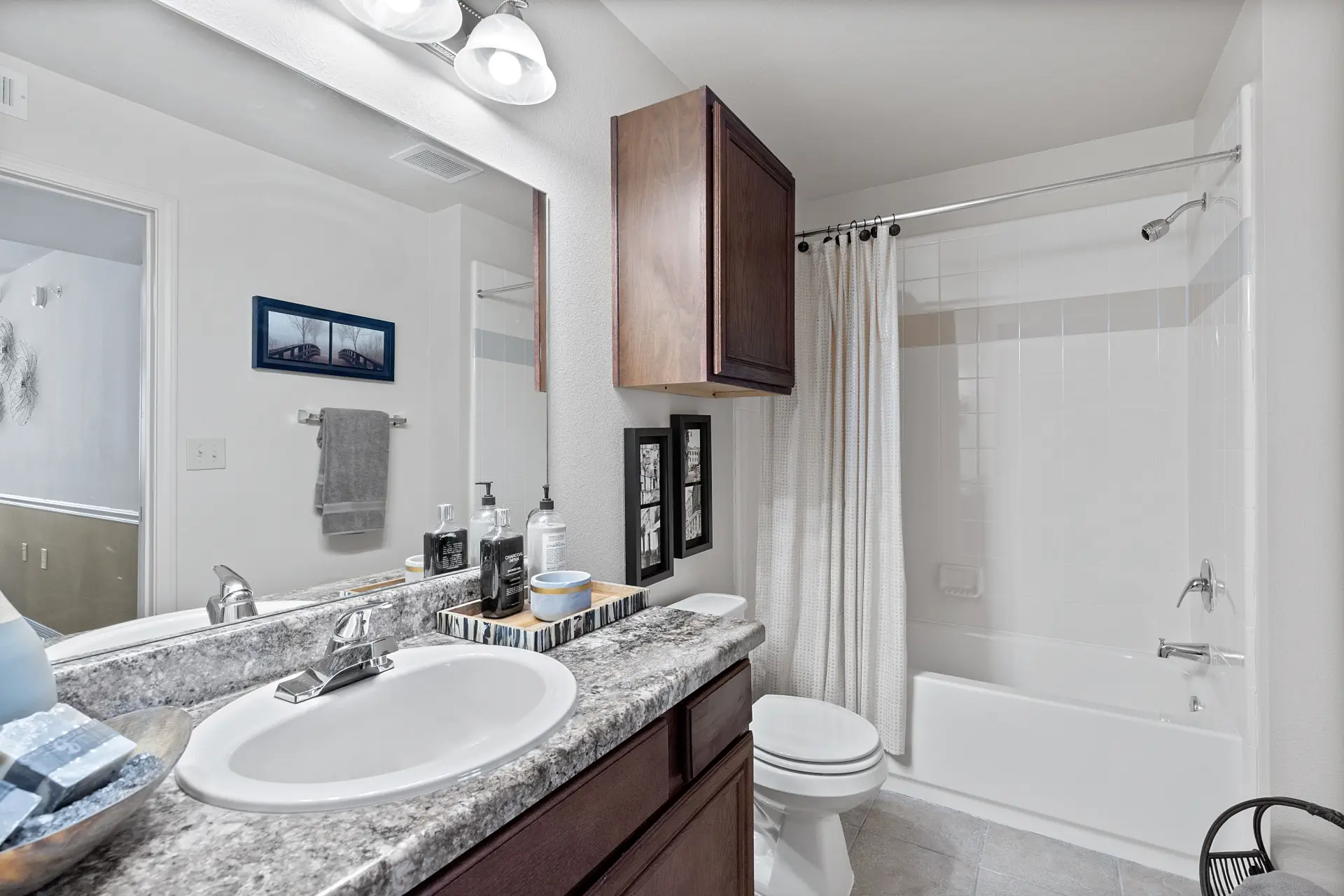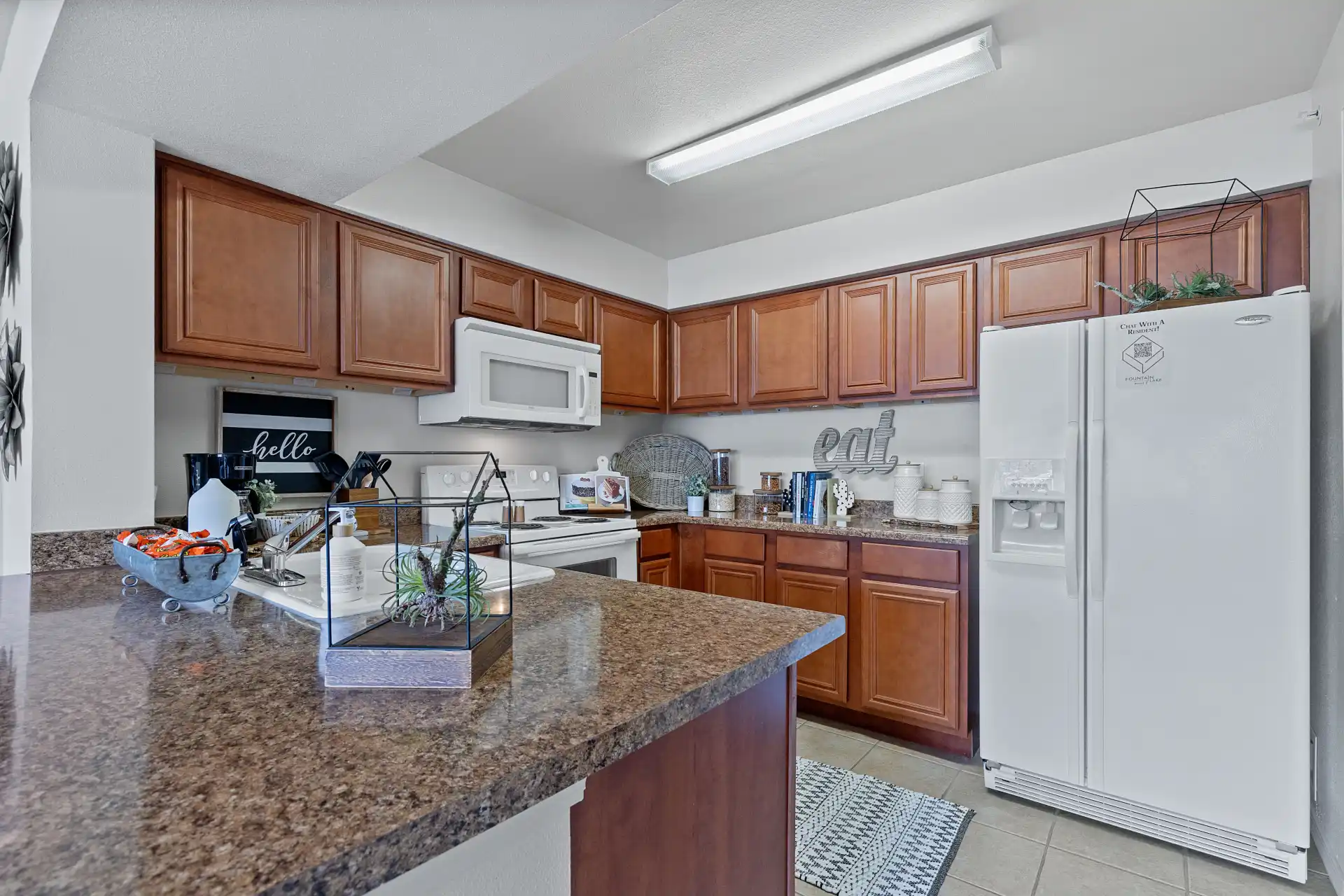 View 3D Virtual TourBrowse through our photo gallery and get a glance at everything Fountain Lake Apartments in Edmond has to offer. Take a look at the photos of our luxury apartment homes and resort-style community and picture your life here, going for refreshing swims in our pool or lounging in your cozy living area. In our photo gallery, you’ll also find a virtual 360-degree tour option, which allows you to explore Fountain Lake on your computer or mobile device.
