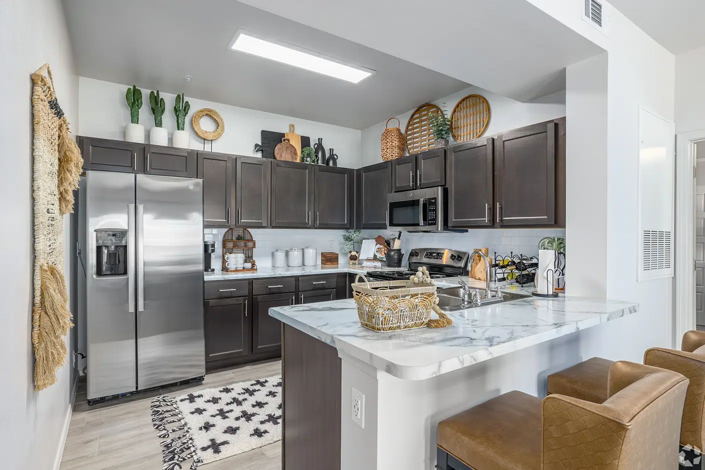 Have a look. You’ll notice a new covetable feature with every next glance. The newly designed, sleek interior finishes accentuate an open layout and high ceilings to give your home a consistent aesthetic backdrop. We invite you to imagine your new home with us. Whether cooking in your modern kitchen, curling up to read next to the fireplace in select units, or letting the sunshine warm you with your morning cup of coffee on your private patio or balcony in select units, every inch of your new home suffuses a sense of comfort, no matter what you’re doing.