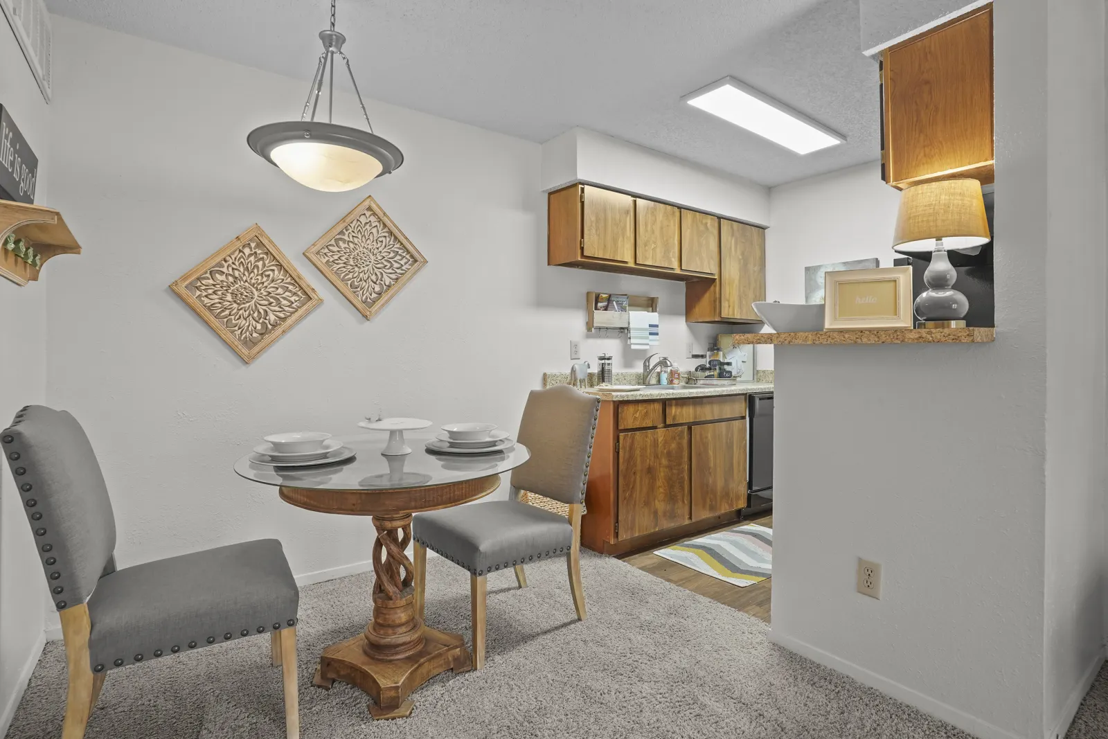 View 3D Virtual TourGet ready to picture yourself living well at Cimarron Pointe Apartments in Oklahoma City. As you explore our photo gallery, start to think about how you might take advantage of the in-home features and community amenities. With one, two, and three bedroom floor plans to choose from, you can find the perfect fit for your furniture and belongings. Think about how you might decorate your new space. Picture your pet lounging cozily beside a working fireplace or strolling happily through the beautiful landscape. It’s all part of the everyday lifestyle in your new OKC apartment or townhome.