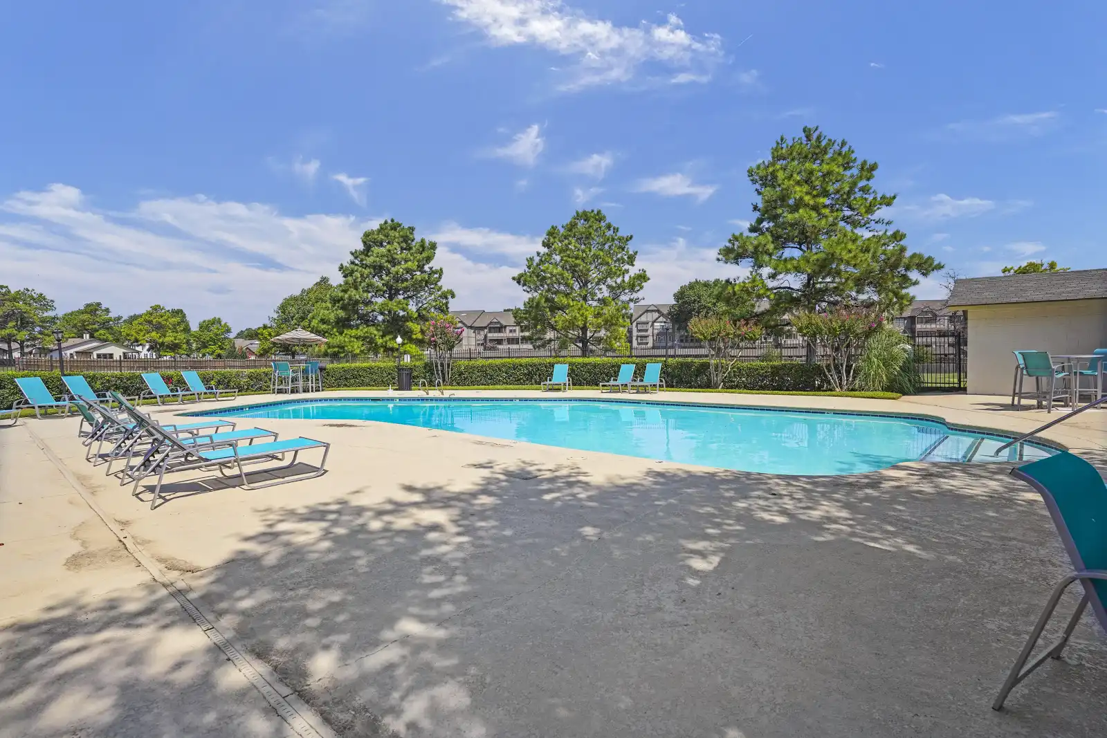 As you stroll along the walking paths throughout our verdant grounds, you’ll discover the numerous amenities around our Tulsa apartment community. Accomplish your goals at our full fitness center, which is equipped for cardio and strength training workouts. On hot days, head to our pool and crack a good book in one of our lounge chairs or cool off in the bright blue water. When you want to challenge your friends to some friendly competition, invite them to our sand volleyball or basketball courts. Community amenities at Barrington Apartments include: