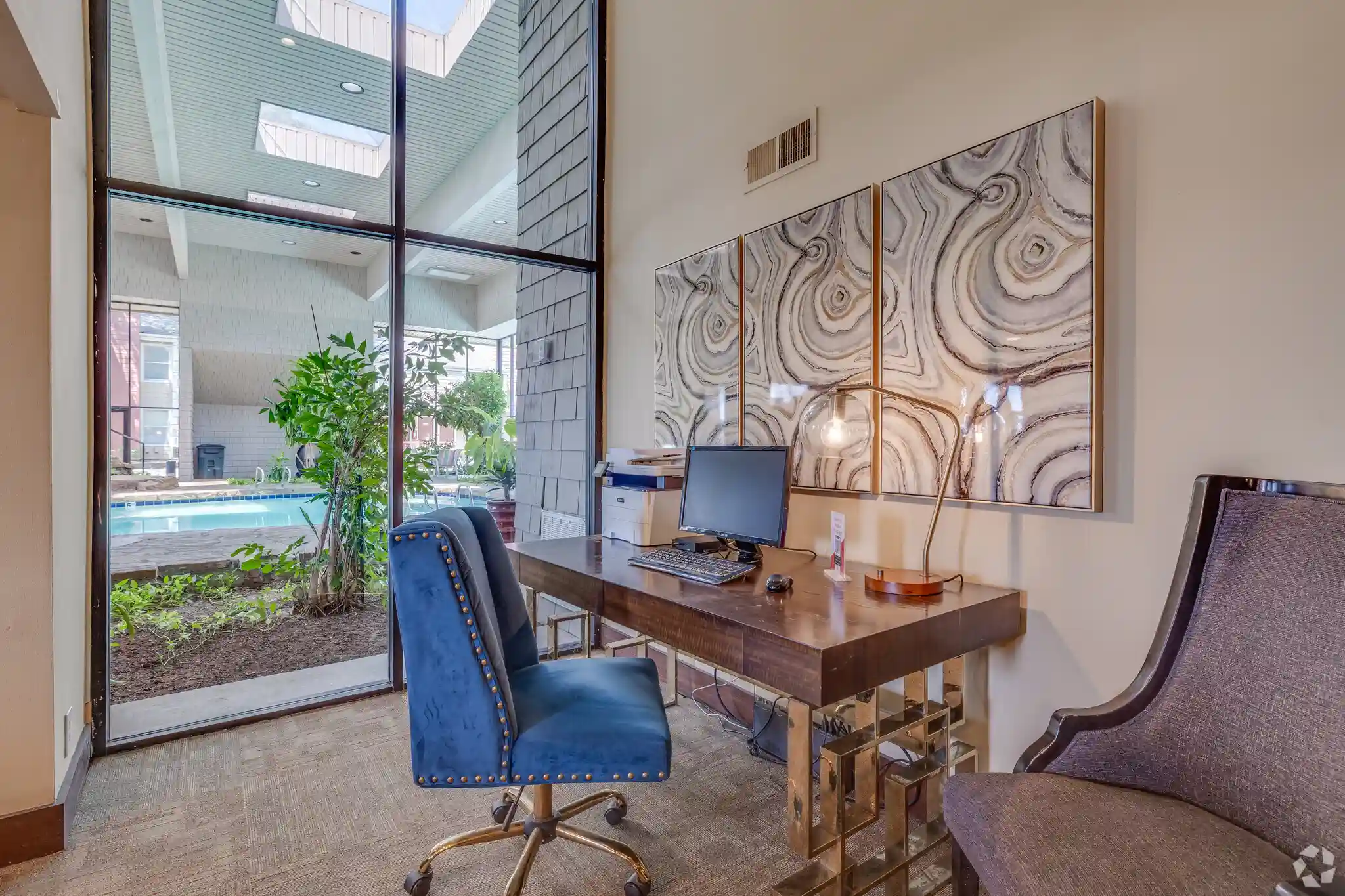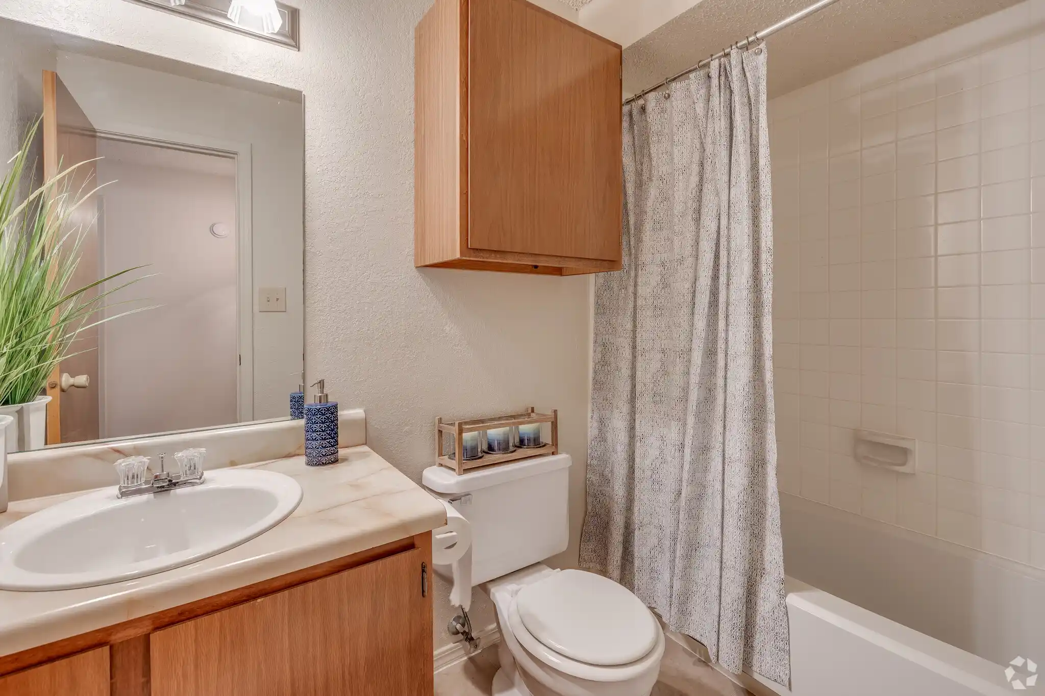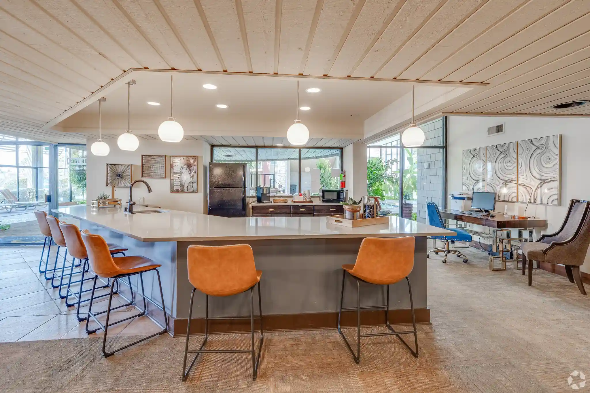 Explore our photo gallery for a glimpse into our apartments in Tulsa. It showcases numerous images of our floor plans and community areas. Additionally, you can embark on a virtual tour of Sunchase from the comfort of your couch. Imagine watching movies in your apartment living room and enjoying winter evenings swimming in our heated indoor pool surrounded by a lush tropical garden ambience!