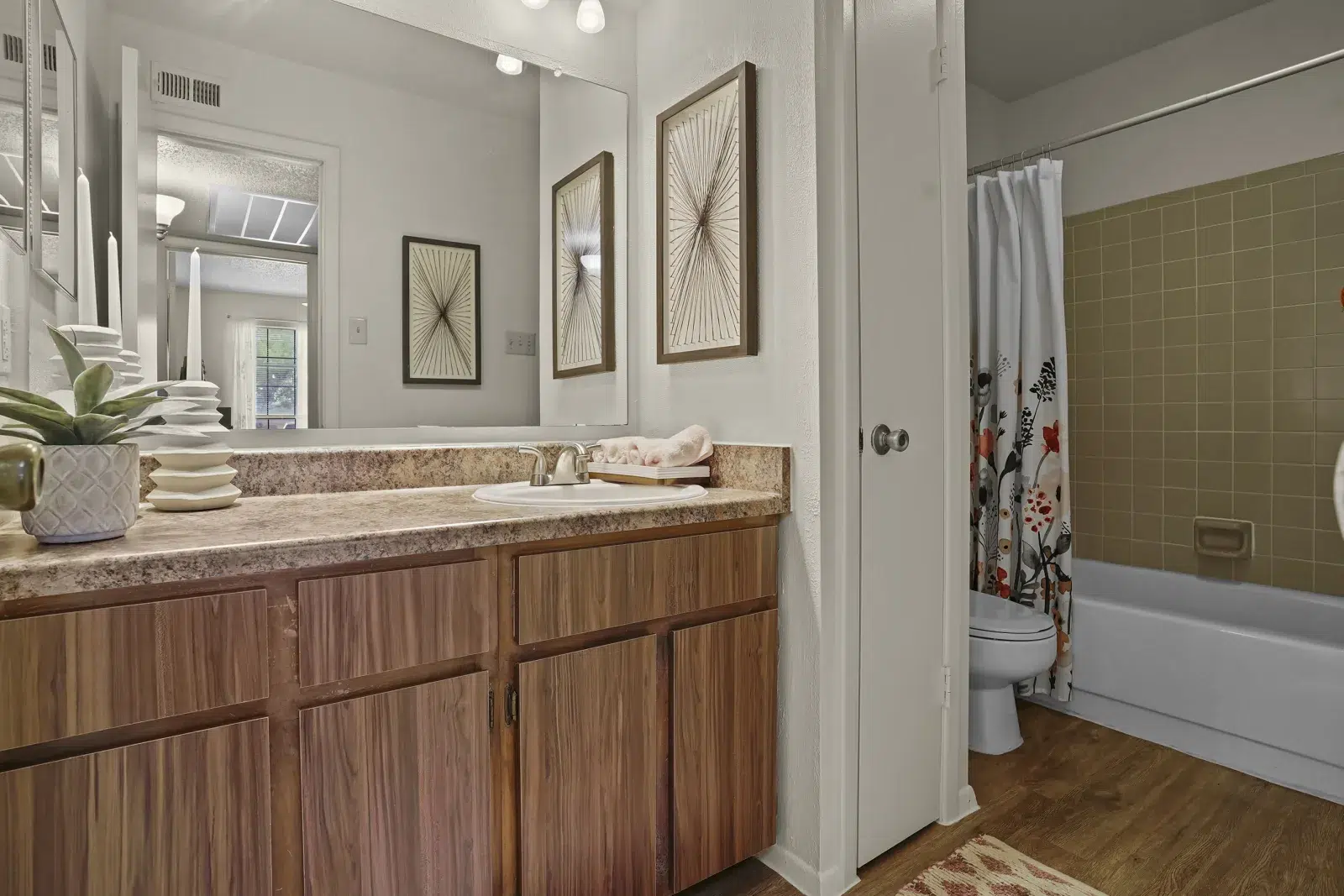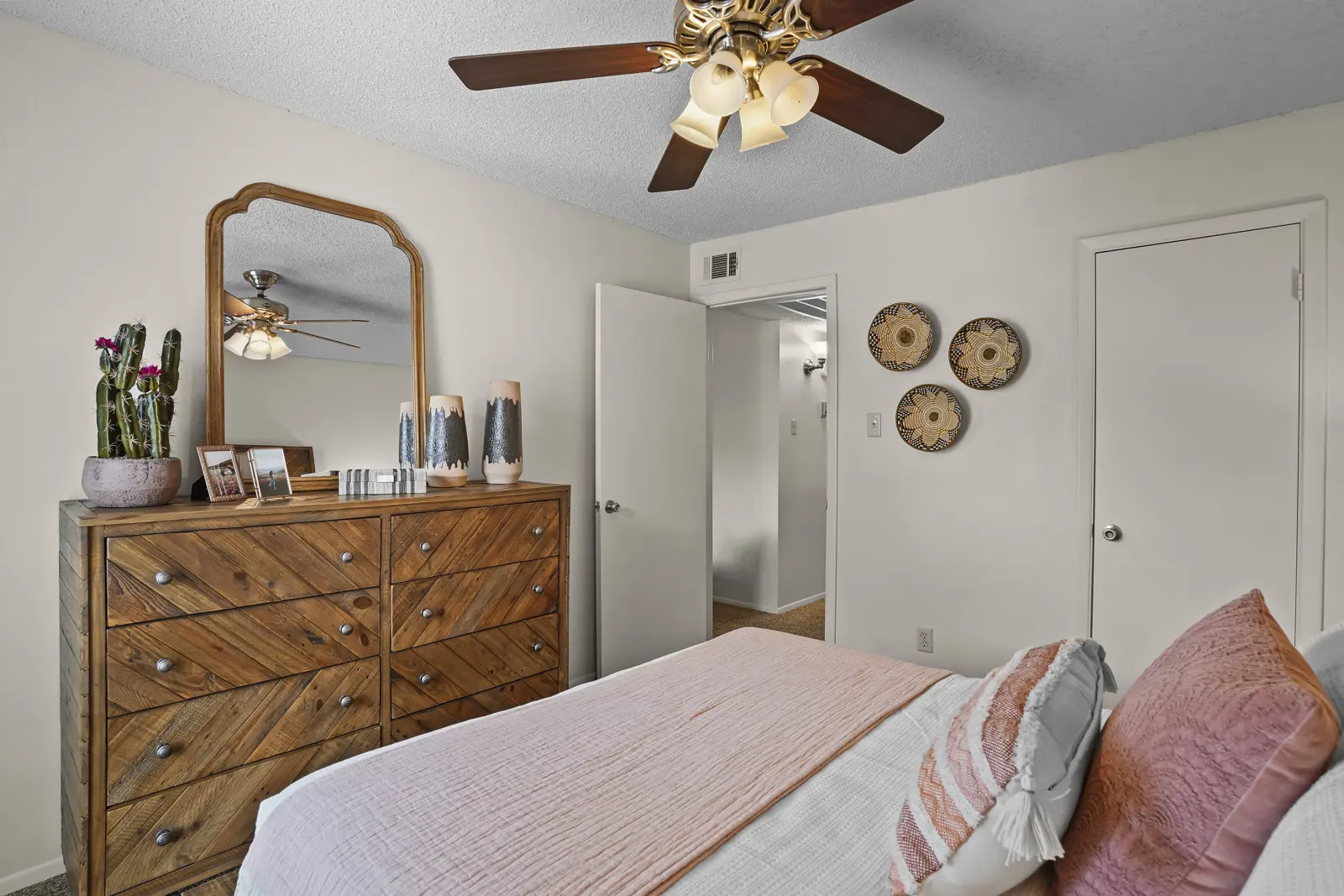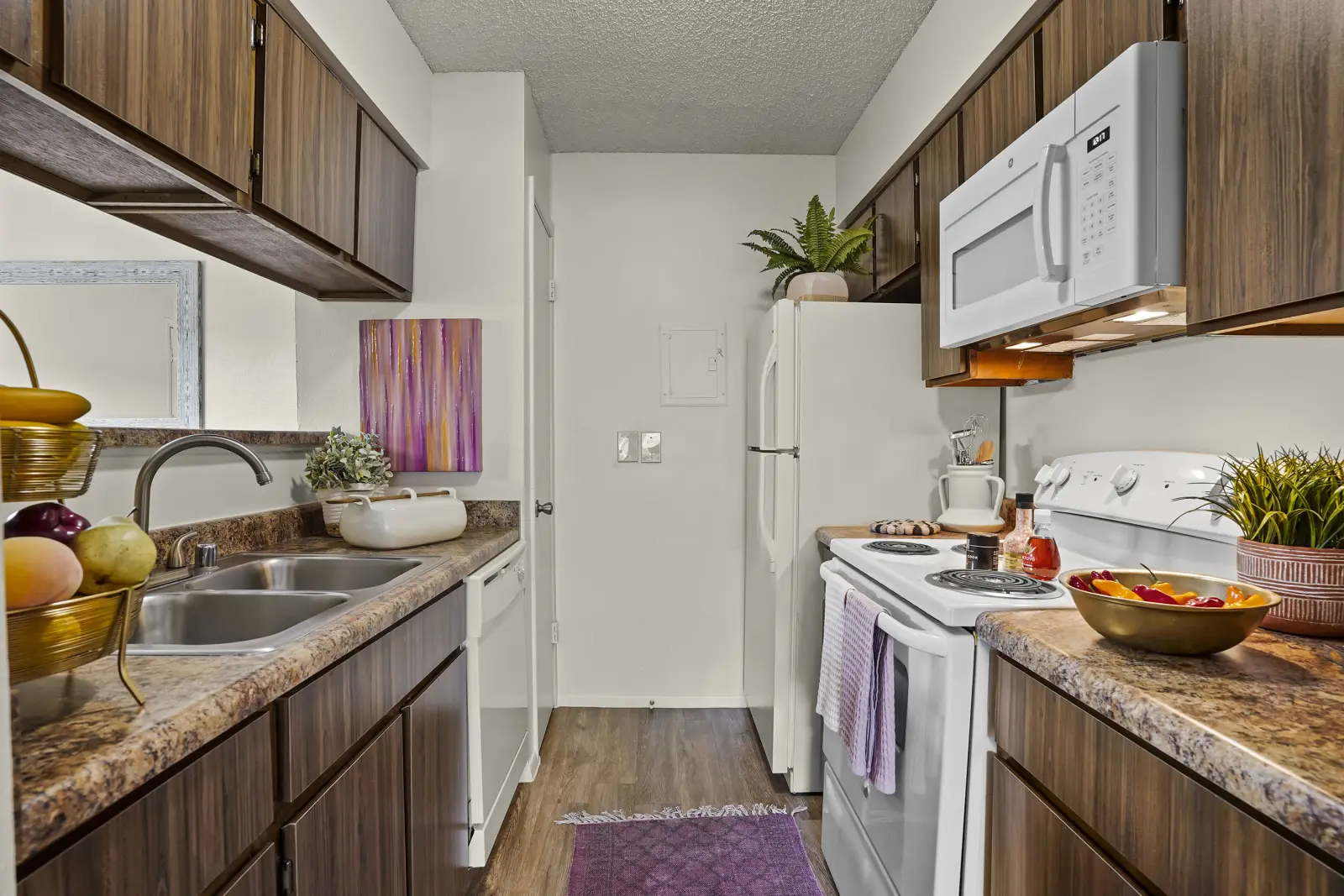 View 3D Virtual TourFor a warm and comfortable home in an excellent location, look no further than High Ridge Apartments. Our one and two bedroom apartments for rent in East El Paso embody the spirit of Texas. Click through our photo gallery and picture a new life to love. Beat the heat in the warm summer months with the help of in-home air conditioning and ceiling fans. On cool winter nights, take advantage of the wood-burning fireplace in select homes. Your new apartment home is also outfitted with a fully equipped kitchen, beautifully furnished with a spacious refrigerator and convenient dishwasher, as well as upgraded countertops, cabinets, and light fixtures.