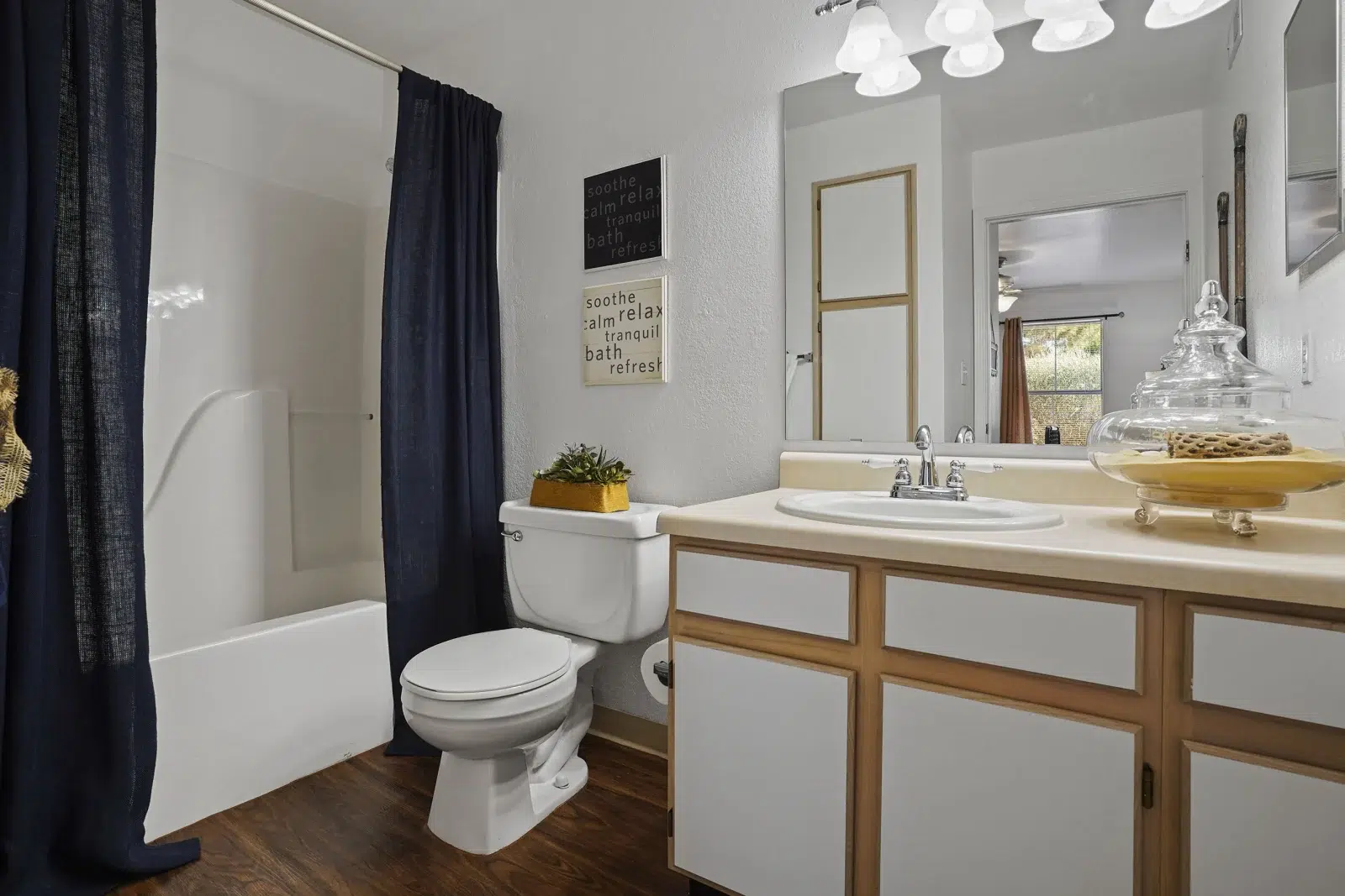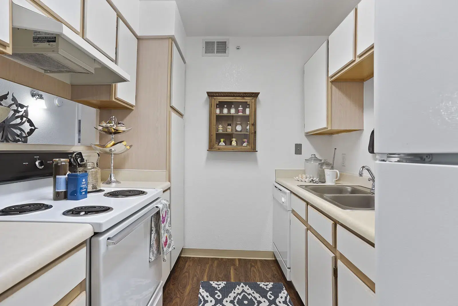 View 3D Virtual TourOur apartments seamlessly combine comfort with convenience. As you enter your one, two, or three bedroom apartment, you’ll feel welcomed by handsome wood-style flooring met by plush carpeting. The kitchen is fully equipped with all the essentials, including a timesaving dishwasher, garbage disposal, and refrigerator, and the roommate-accommodating floor plan makes it easy to share your home or host out-of-town guests while maintaining plenty of privacy and space.
